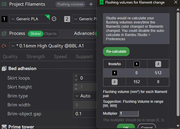 When changing the colours in the slicer, click "Flushing volumes" and re-calculate. Changing the colours to their correct hex will also automatically calculate the recommended amount of flushing.
