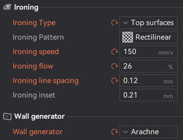 Alternative ironing settings which are popular, but I have not tested. These settings are a lot slower than those above, adding significant print time but increasing quality.