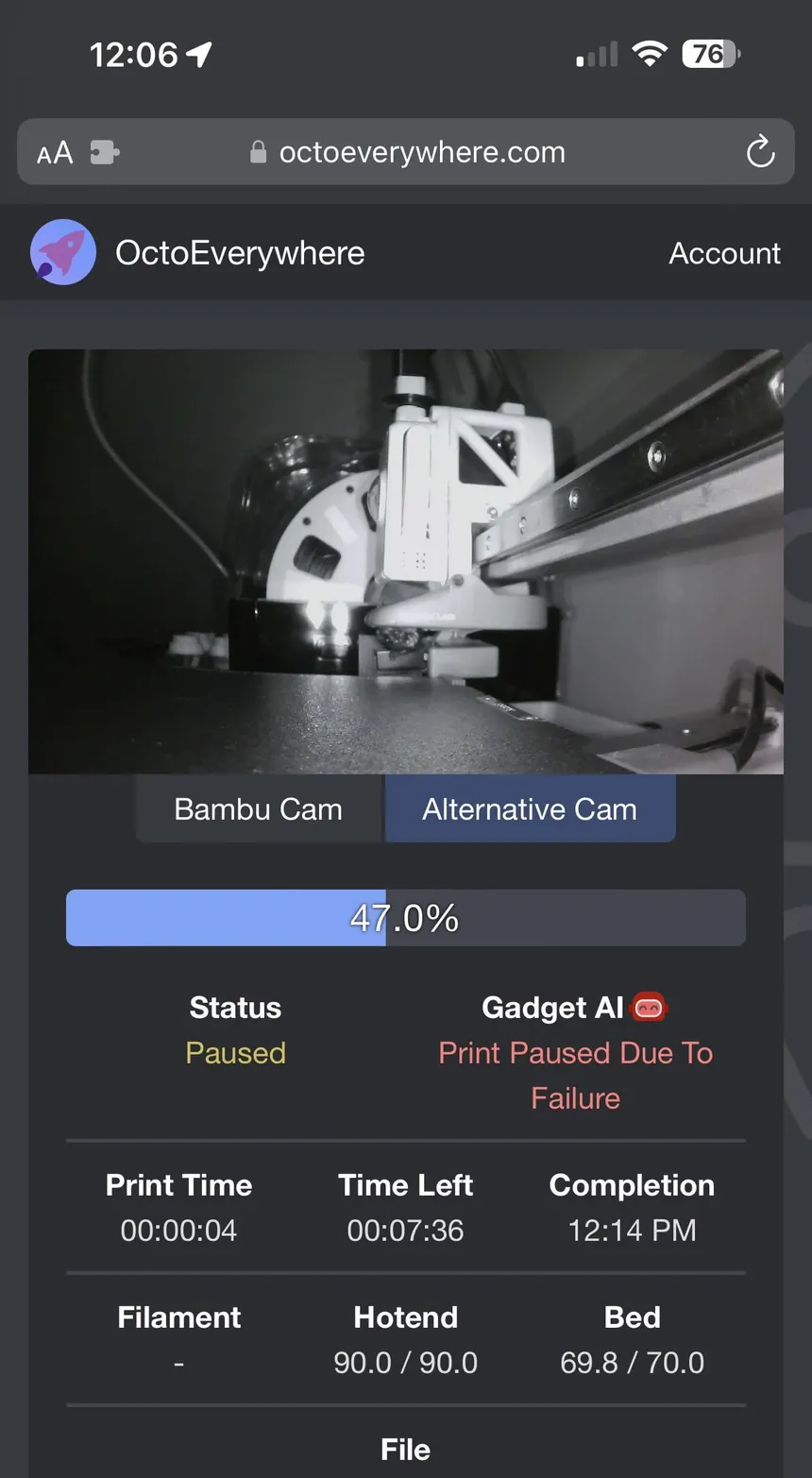 OctoEverywhere is designed to be a central command centre for a variety of 3D printer brands, Similarly to Octoprint. Octoeverywhere provides extensive printing notifications with AI failure detection, video streaming and remote access features. It is an open source project which utilises the Bambu Lab API.