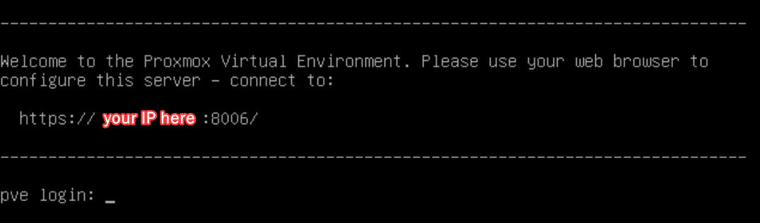 Above the login, you should see the login address in the format of https://x.x.x.x:8006/